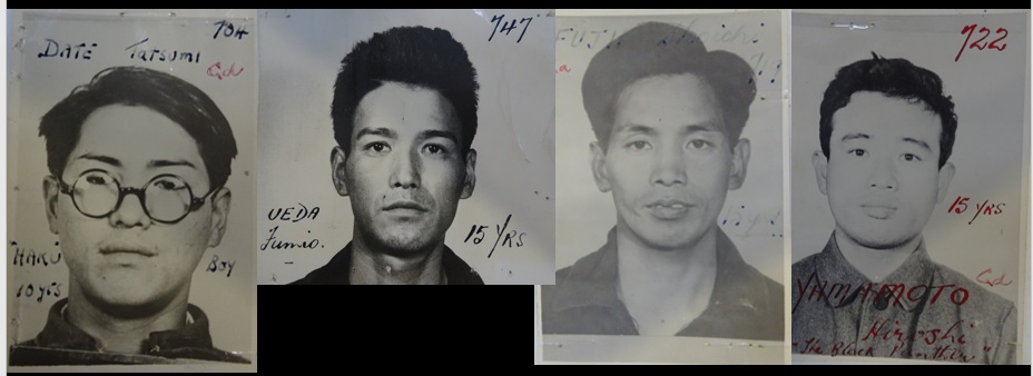 They are, from the left, DATE Tatsumi, aka ‘the Hako Boy’; UEDA Fumio, FUJII Shoichi and YAMAMOTO Hiroshi. Their sentences are visible on the photos with the exception of Fujii who, like two of the others, was given 15-years’ imprisonment but would have served no more than eleven.